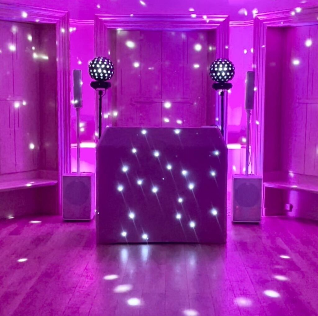 Wherever your wedding is, I bring professional DJ services, elegant lighting, and a fully tailored music experience to make your day unforgettable.